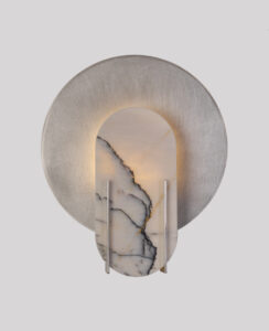 Alice to lampa, która jest młodszą siostrą Aurory, kontynuuje jej koncept w wersji ściennej. Podobnie jak Aurora, kinkiet Alice to oświetlenie, które łączy różne płaszczyzny surowego ręcznie szczotkowanego aluminium z pięknem marmuru, podtrzymując wyjątkową grę świateł, formy i materiałów. Jej archetypiczne wzornictwo opiera się na formie koła i prostokąta, nadając wnętrzu ponadczasowego charakteru. Każdy egzemplarz jest unikalny ze względu na różnorodność unerwienia kamienia, co dodaje szczególnej wartości tej lampie.