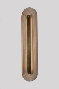 Dromos przywodzi na myśl starożytny stadion, dzięki formie stworzonej z zagłębiających się w materiale rozświetlonych frezowanych poziomów. Kinkiet wykonany jest z litego, ręcznie szlifowanego drewna dębowego, dającego poczucie trwałości i szlachetności. Źródło światła w Dromosie ukryte jest za mosiężną przesłoną dzięki czemu światło jest miękkie i dekoracyjne.