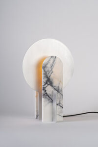 Aurora z Marmurem podobnie jak jej archetyp Aurora to zarówno lampa jak i obiekt, łącząca w sobie ponadczasowe wzornictwo i mistyczną grę świateł. To, co wyróżnia ten wariant Aurory to wykorzystanie kamienia. Delikatne i cienkie płaszczyzny marmuru Calacatta miękko przepuszczają światło, odkrywając w ten sposób kolejny wymiar jego odbicia. Każda przesłona jest unikalna i ma niepowtarzalną strukturę, która podkreślona przy użyciu światła tworzy harmonijną grę pomiędzy naturą a designem.