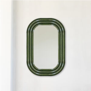 W kolekcji luster ELO Pani Jurek bada ceramikę i potencjał refleksyjny powierzchni lustrzanych. Zainspirowane efektem falowania na wodzie, rzeźbiarskie ramy naśladują rozszerzające się okręgi, które pojawiają się po rozpryskaniu. Elementy ceramiczne są ręcznie szkliwione aerografem, co nadaje im wyjątkowy, rzemieślniczy charakter. Nazwa „ELO” to żartobliwe nawiązanie do polskiego slangu oznaczającego „cześć”, odnoszącego się do powitania między Tobą a Twoim odbiciem w lustrze.
