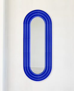 W kolekcji luster ELO Pani Jurek bada ceramikę i potencjał refleksyjny powierzchni lustrzanych. Zainspirowane efektem falowania na wodzie, rzeźbiarskie ramy naśladują rozszerzające się okręgi, które pojawiają się po rozpryskaniu. Elementy ceramiczne są ręcznie szkliwione aerografem, co nadaje im wyjątkowy, rzemieślniczy charakter. Nazwa „ELO” to żartobliwe nawiązanie do polskiego slangu oznaczającego „cześć”, odnoszącego się do powitania między Tobą a Twoim odbiciem w lustrze.