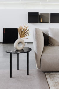 Tele round 04 to okrągły stół rozkładany, który łączy nowoczesną lekkość z codzienną funkcjonalnością. Subtelnie profilowany blat i rytm segmentowych nóg nadają mu spokojny, architektoniczny charakter, a mechanizm rozkładania pozwala w kilka chwil dopasować wielkość blatu do liczby gości.