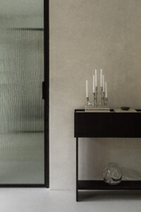 Konsola ORIA z serii LINEE to mebel o prostej formie z charakterystycznym cokołem wokół górnej części korpusu. Wyposażona w niewidoczną, na pierwszy rzut oka, funkcjonalną szufladę otwieraną systemem TIP ON. Dodatkowym ciekawym elementem jest dolna półka pozwalająca wyeksponować, wazon, albumy bądź inne ulubione przedmioty. Sercem mebla jest piękny blat wykonany z naturalnego kamienia: wyjątkowego, prążkowanego trawertynu lub eleganckiego kwarcytu Taj Mahal o wspaniałym satynowym wykończeniu.