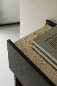 Korpus mebla wykonany jest z ekologicznej płyty meblowej pokrytej naturalnym fornirem dębowym w kolorze ciemnego grafitu. Charakteryzuje się trwałością oraz pięknym, równomiernym usłojeniem, które idealnie współgra ze strukturą marmuru. W pólkach i szufladach zastosowaliśmy system otwierania TIP ON dzięki czemu z łatwością skorzystasz z przechowywanych wewnątrz przedmiotów.