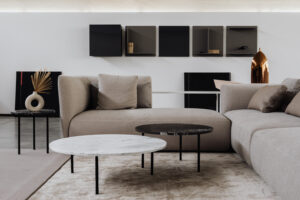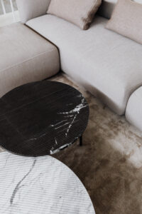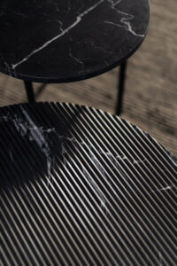Stolik kawowy GRUFF M to niezwykle elegancki mebel, który przyciąga wzrok swoim marmurowym blatem i ponadczasową formą. Blaty mebli zostały wykonane z naturalnego marmuru w różnych wykończeniach – polerowanym, szczotkowanym i ryflowanym w delikatne prążki. Ten ostatni został zaprojektowany tak aby zaskakiwać fakturą, ale też łatwością użytkowania. Nawet najmniejsza filiżanka espresso będzie stabilnie stała na blacie stolika. Seria składa się na 3 stoliki o różnych średnicach i wysokościach dzięki czemu z łatwością skomponujesz zestaw stolików do Twojego salonu. Stoliki z tej serii dostępne są w czterech wyselekcjonowanych wariantach: