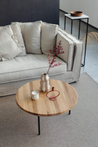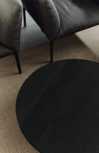 GRUFF Oak to seria stolików kawowych wykonanych z litego drewna dębowego. Ich powierzchnia jest frezowana w delikatne prążki, nadając meblom wyjątkowy detal. Frez został zaprojektowany tak aby zaskakiwać fakturą, ale też łatwością użytkowania. Nawet najmniejsza filiżanka espresso będzie stabilnie stała na blacie stolika. Stolik uniesiony na 3 smukłych stalowych nóżkach, dostępny w wykończeniu naturalnym oraz grafitowym.