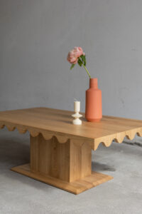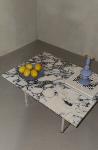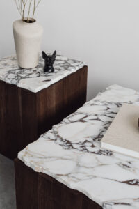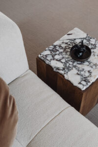 PERA S to wyjątkowy stolik, który może pełnić rolę stolika kawowego lub pomocniczego przy kanapie. Jego podstawa wykonana z litego drewna, zabezpieczonego naturalnym olejowoskiem – dostępna w czterech wariantach wybarwienia. Sercem mebla jest marmurowy blat o surowych i nieregularnych krawędziach. Nieszlifowane krawędzie przypominają nam o prawdziwym, naturalnym pochodzeniu kamienia.
