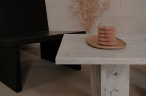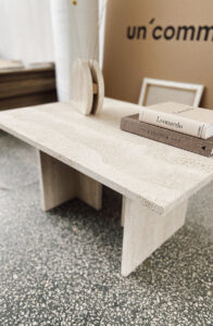 Kamienne blaty mebli powstają z wyselekcjonowanych płyt marmuru pochodzącego z różnych zakątków świata min. Włoch, Hiszpani czy Iranu. Jego naturalne pochodzenie oraz złożony proces powstawania powodują, iż niemal niemożliwe jest wydobycie dwóch jednakowych kawałków kamienia, dzięki czemu jest to idealny materiał dla mebli Un’common. Mimo swojej wagi i trwałości wymaga troski w obróbce i użytkowaniu, jednak dobre traktowania odpłaca każdego dnia. Blaty mebli są zaimpregnowane specjalistycznymi preparatami.
