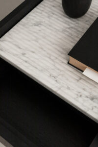 Precyzyjnie ryflowany marmur to znak charakterystyczny serii FORST. Odkryj również konsolę FORST w tym wykończeniu.